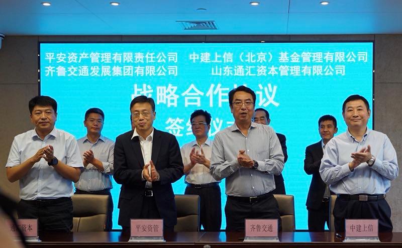 此后,金美资本总裁郭雷、平安资产管理有限公司董事长万放、齐鲁交通发展集团有限公司董事长徐春福、山东通汇资本管理有限公司董事长郭伟分别代表本公司签署了合作协议。